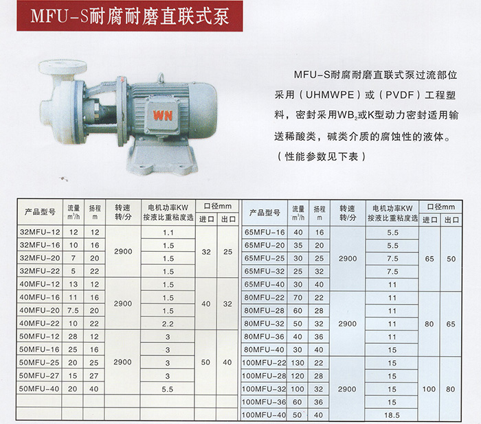 MFU-S耐腐耐磨直联式泵